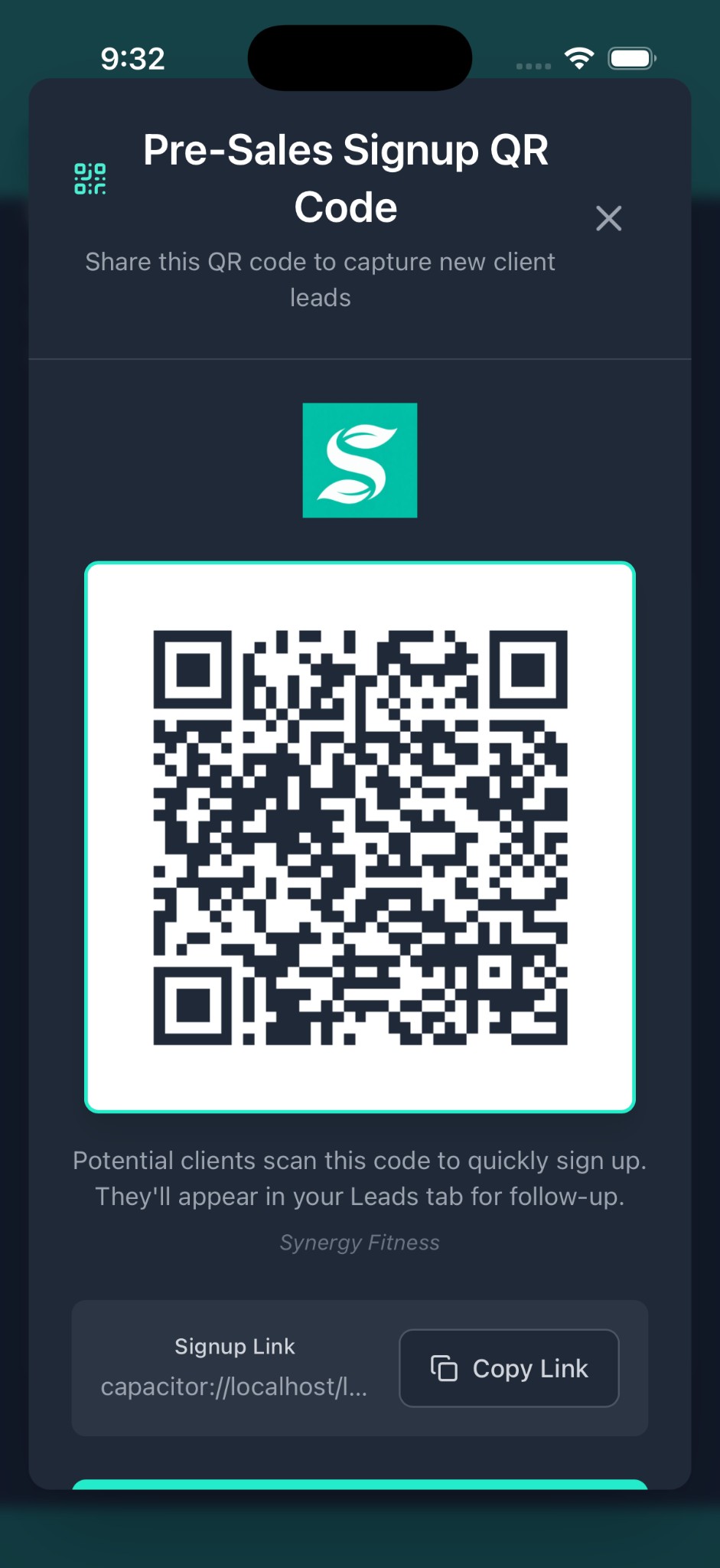 Manage clients, check schedules, and build programs from anywhere. Your trainers get the full dashboard. Your clients see your logo, your colours, and your business name throughout the app.